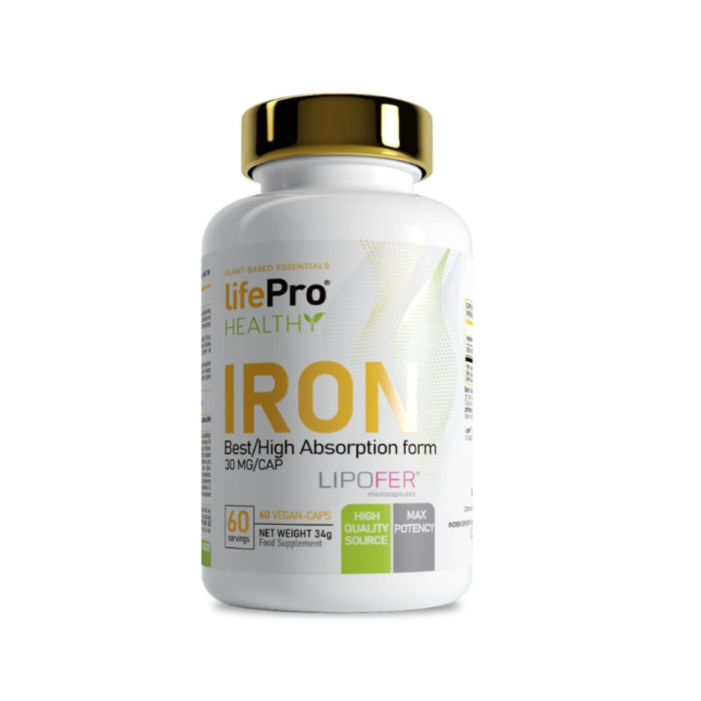 Life Pro Iron es un suplemento de Hierro Liposomado es un complemento alimenticio formulado con la innovadora tecnología LIPOFER®, un hierro microencapsulado que mejora notablemente su absorción y evita los molestos efectos secundarios digestivos comunes en otros tipos de hierro. Diseñado para mantener unos niveles óptimos de hierro y favorecer la formación normal de glóbulos rojos, es ideal para deportistas, mujeres y personas con carencias de hierro o dietas restrictivas.